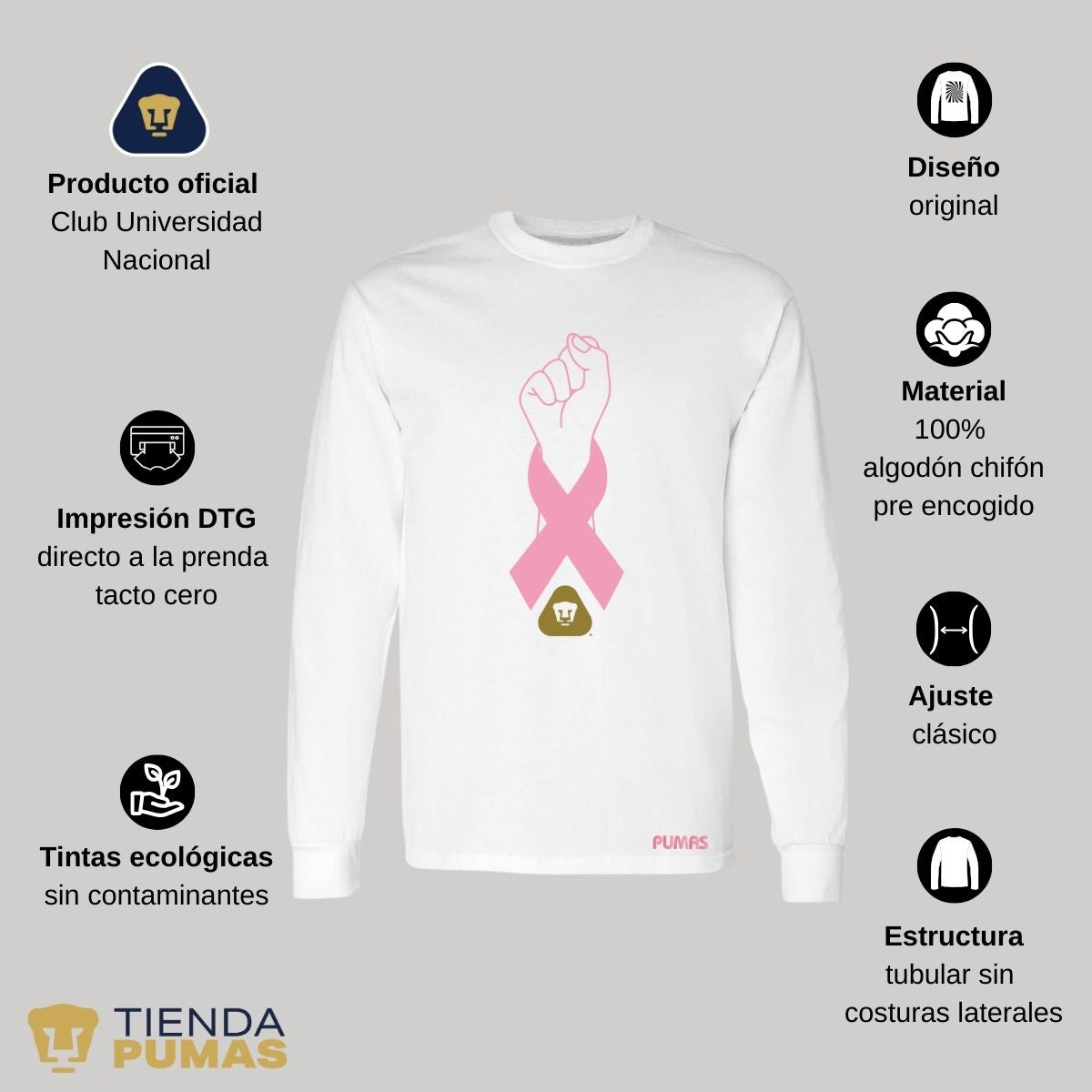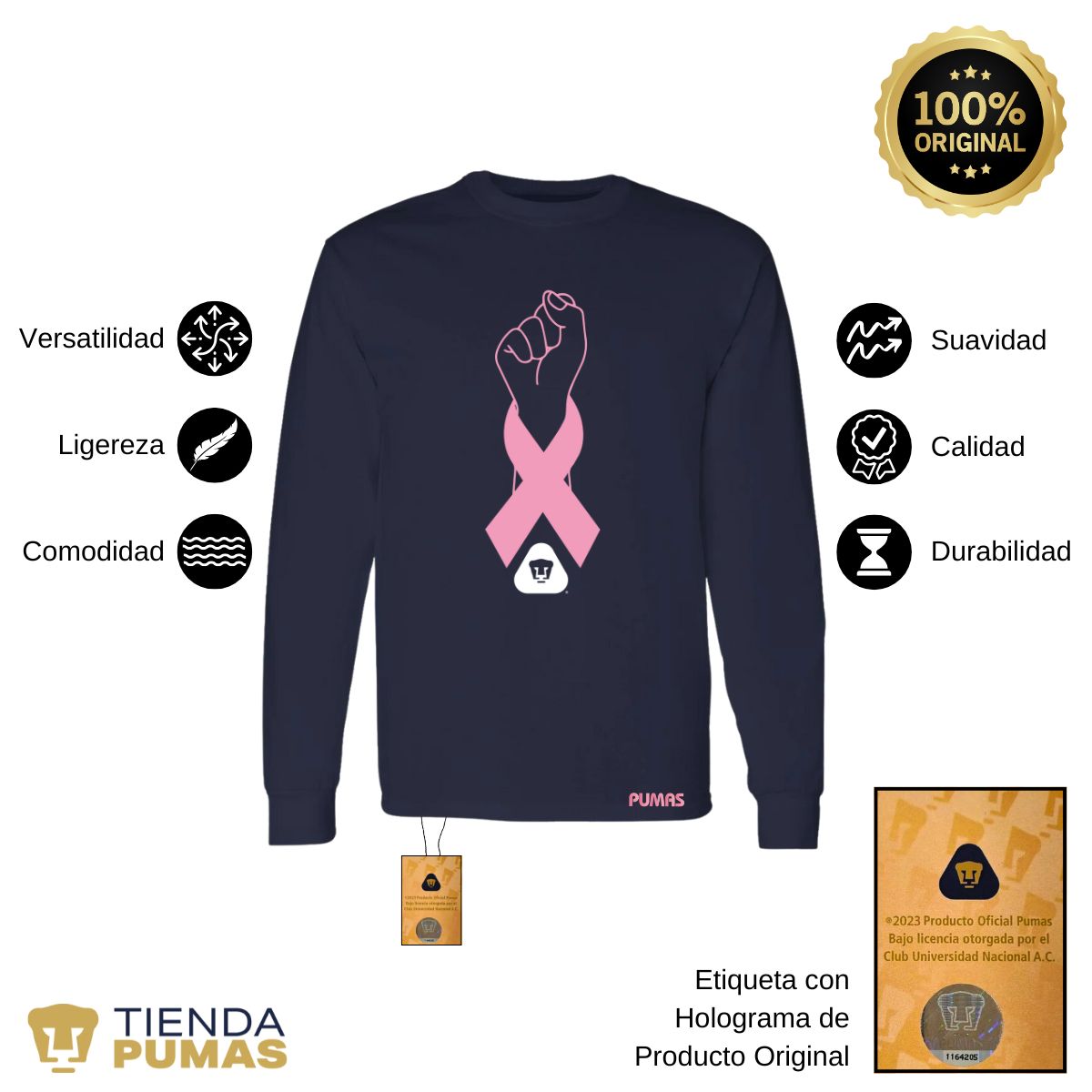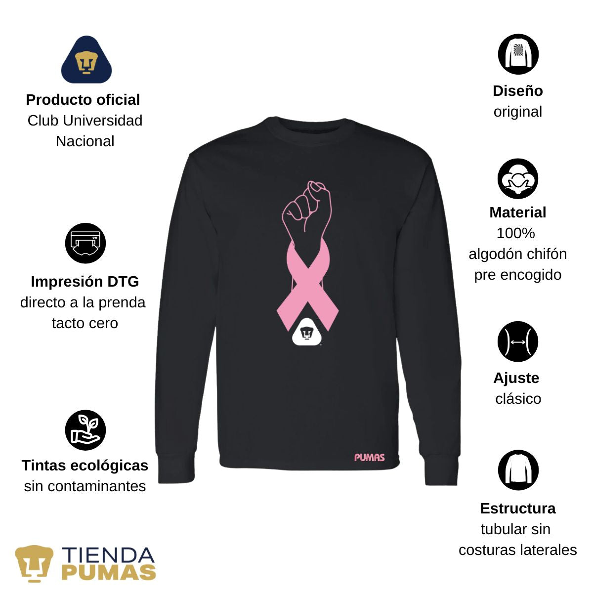 - ORIGINALIDAD Y SOSTENIBILIDAD: Playera de adulto de manga larga, Producto Oficial con un diseño original de Pumas UNAM impreso con tecnología DTG (directo a la prenda) tacto cero. Se utilizan tintas ecológicas sin contaminantes que se adhieren a las fibras de la ropa, garantizando calidad, colores vivos e imagen de larga duración en la camiseta sin comprometer el planeta. La playera cuenta además con etiqueta y holograma que garantiza un producto 100% original de Pumas UNAM.
