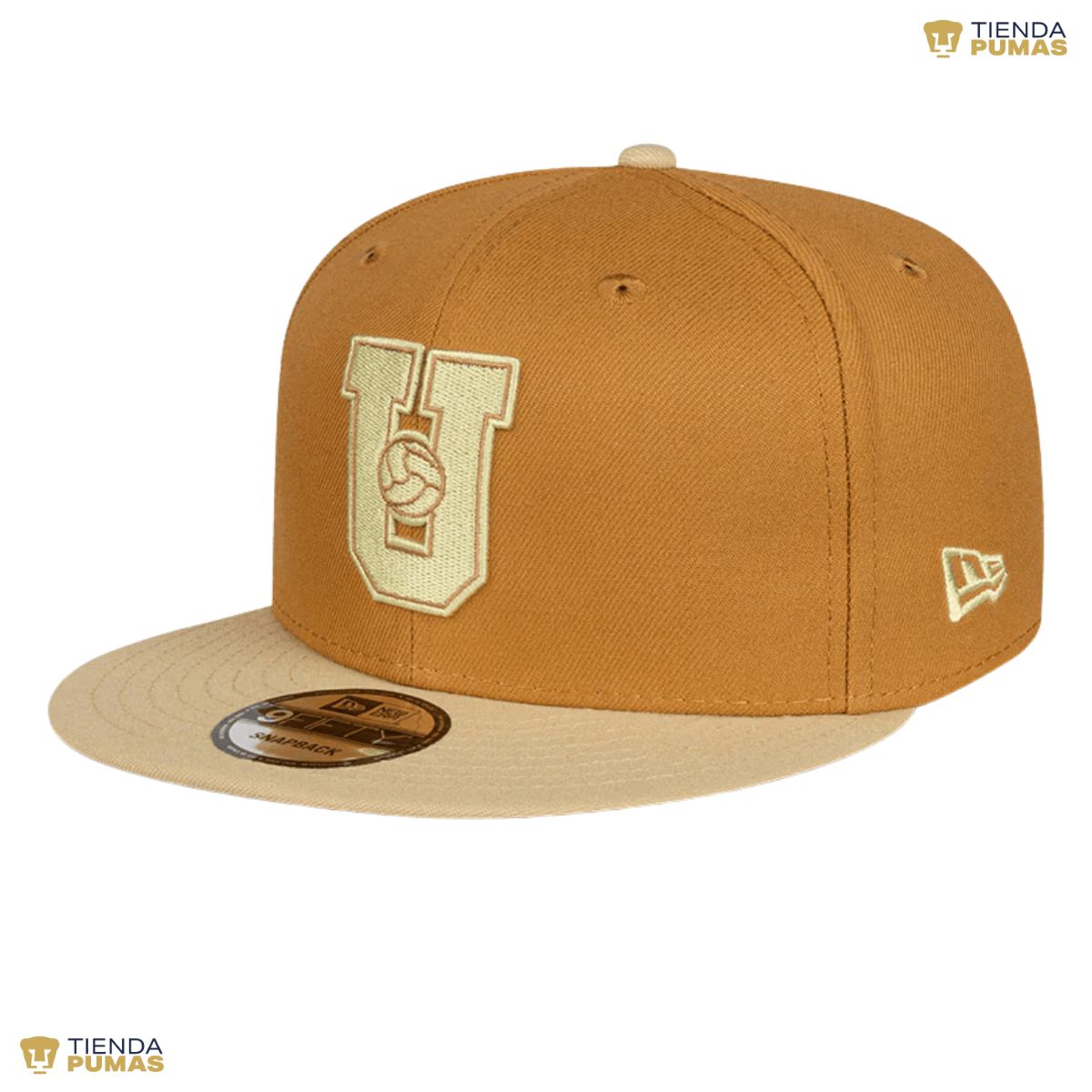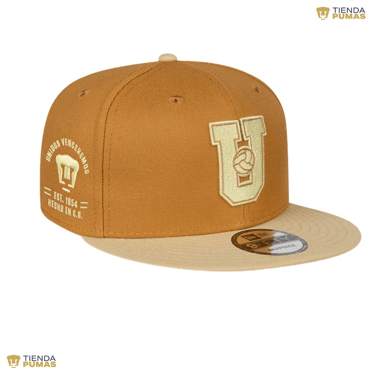 Gorra plana New Era 9FIFTY de Pumas presenta un diseño con el logotipo retro de los Pumas bordado en los paneles frontales, un bordado representativo del club del lado derecho, el nombre del equipo al reverso y el flag de New Era bordado del lado izquierdo.