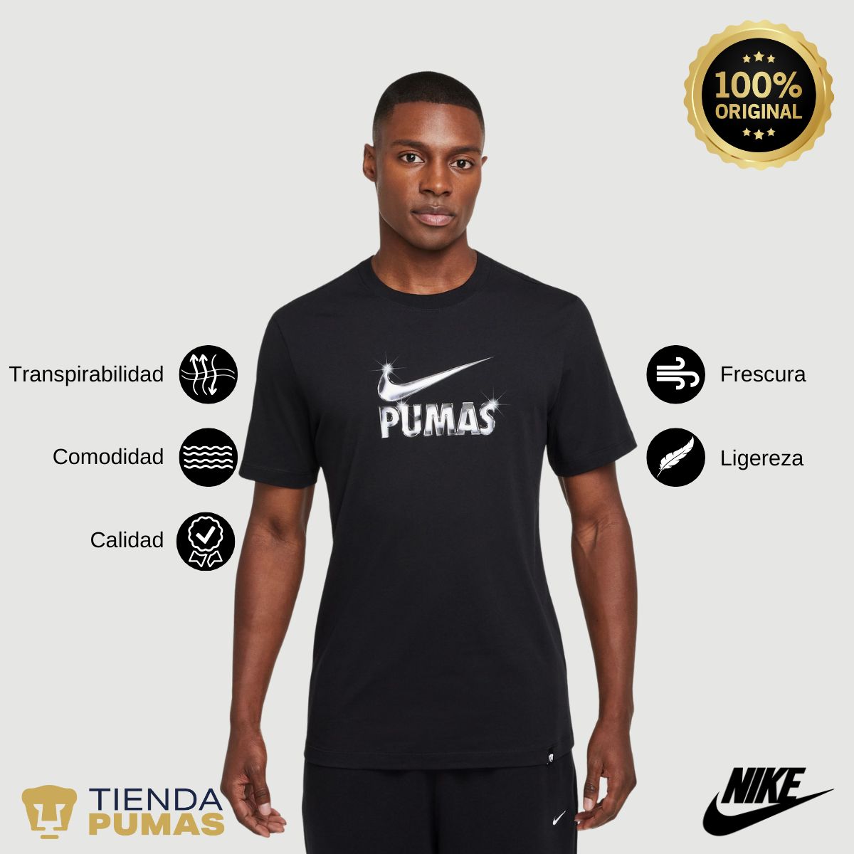 Muestra tu lealtad en la parte delantera y central con la suave tela de algodón para el día a día de la playera Pumas UNAM.