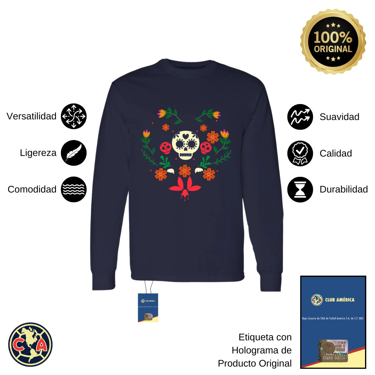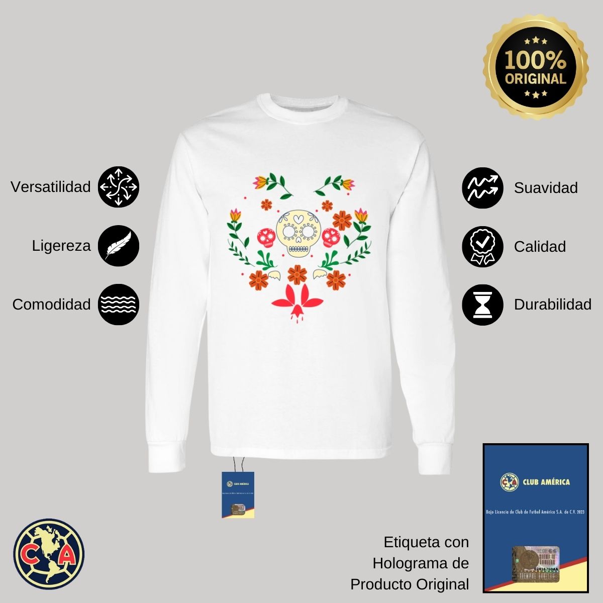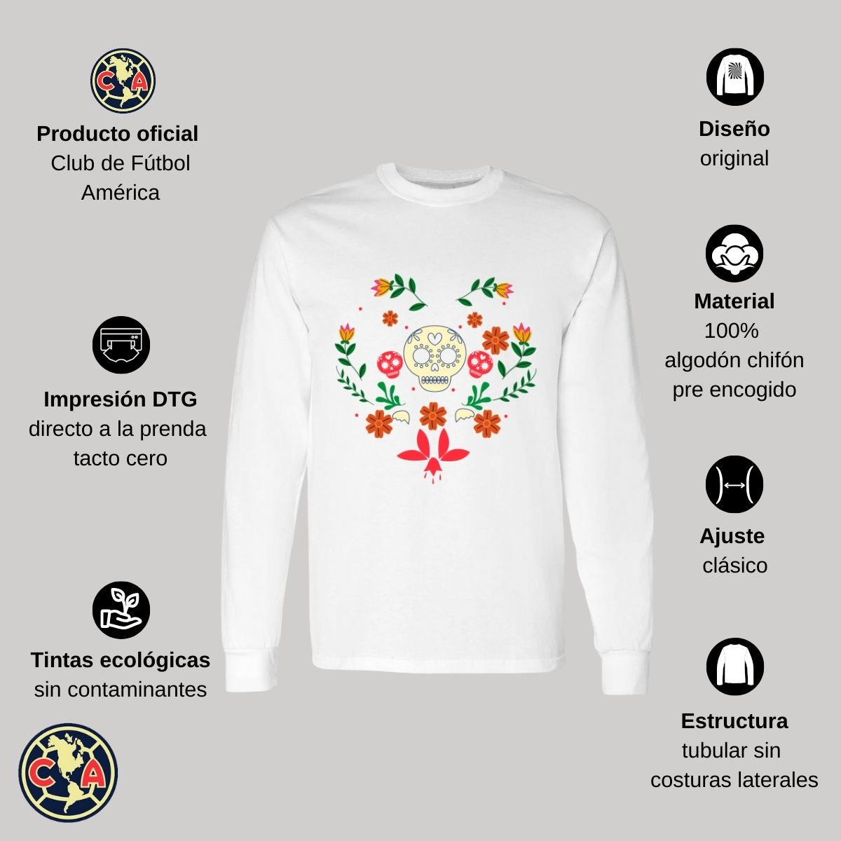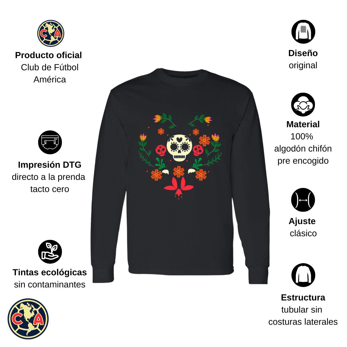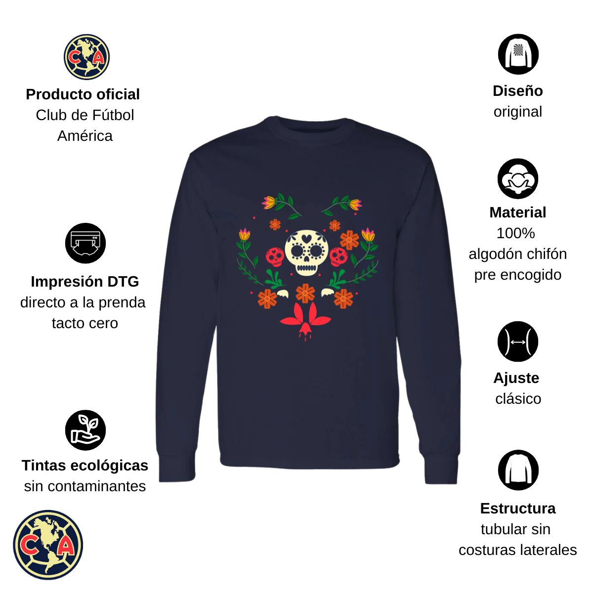 - ORIGINALIDAD Y SOSTENIBILIDAD: Playera de adulto de manga larga, Producto Oficial con un diseño original de América impreso con tecnología DTG (directo a la prenda) tacto cero. Se utilizan tintas ecológicas sin contaminantes que se adhieren a las fibras de la ropa, garantizando calidad, colores vivos e imagen de larga duración en la camiseta sin comprometer el planeta. La playera cuenta además con etiqueta y holograma que garantiza un producto 100% original de América.