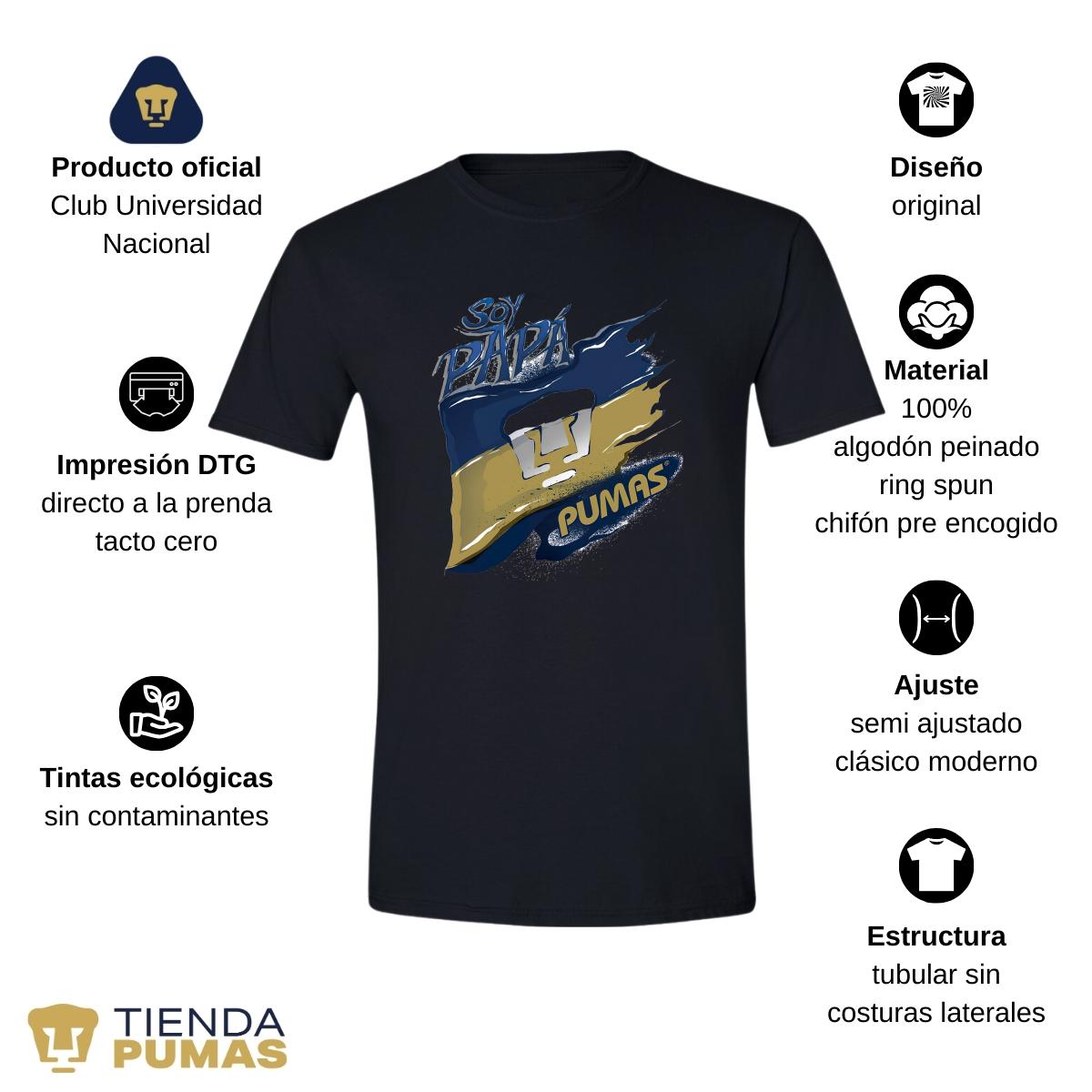 - ORIGINALIDAD Y SOSTENIBILIDAD: Playera de hombre de manga corta, Producto Oficial con un diseño original de Pumas UNAM impreso con tecnología DTG (directo a la prenda) tacto cero. Se utilizan tintas ecológicas sin contaminantes que se adhieren a las fibras de la ropa, garantizando calidad, colores vivos e imagen de larga duración en la camiseta sin comprometer el planeta. La playera cuenta además con etiqueta y holograma que garantiza un producto 100% original de Pumas UNAM.