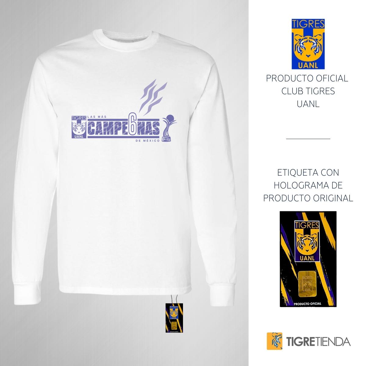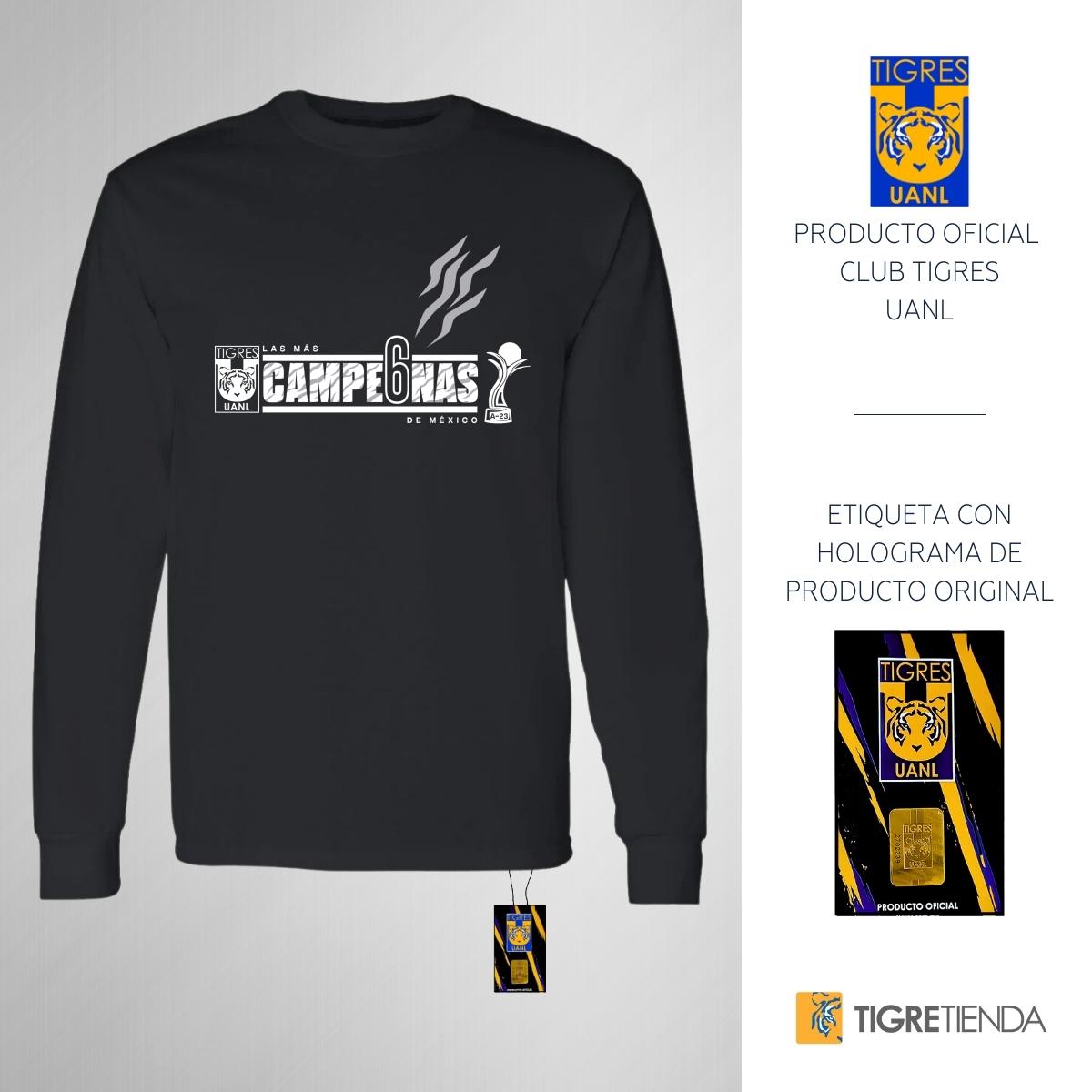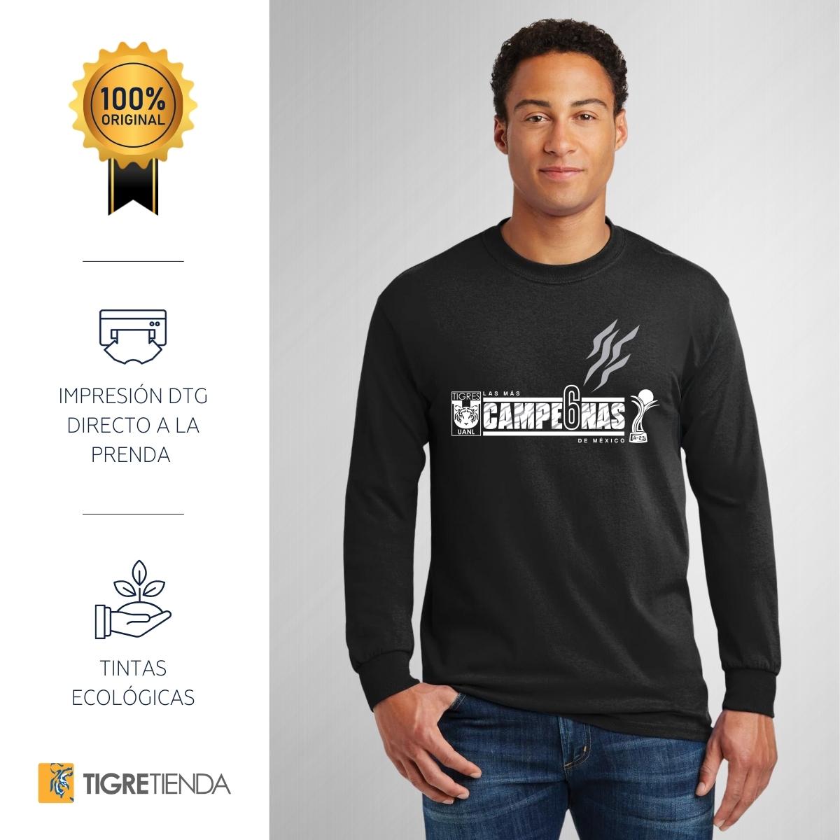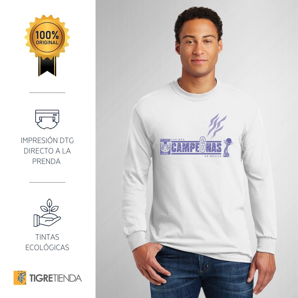 - ORIGINALIDAD Y SOSTENIBILIDAD: Playera de adulto de manga larga, Producto Oficial con un diseño original de Tigres UANL impreso con tecnología DTG (directo a la prenda) tacto cero. Se utilizan tintas ecológicas sin contaminantes que se adhieren a las fibras de la ropa, garantizando calidad, colores vivos e imagen de larga duración en la camiseta sin comprometer el planeta. La playera cuenta además con etiqueta y holograma que garantiza un producto 100% original de Tigres UANL.