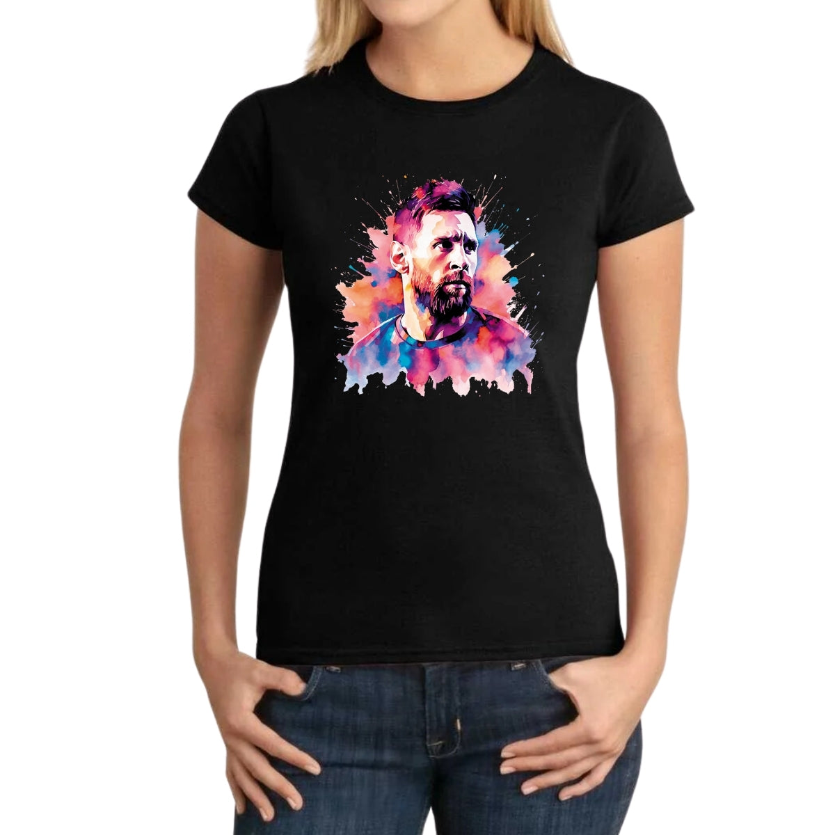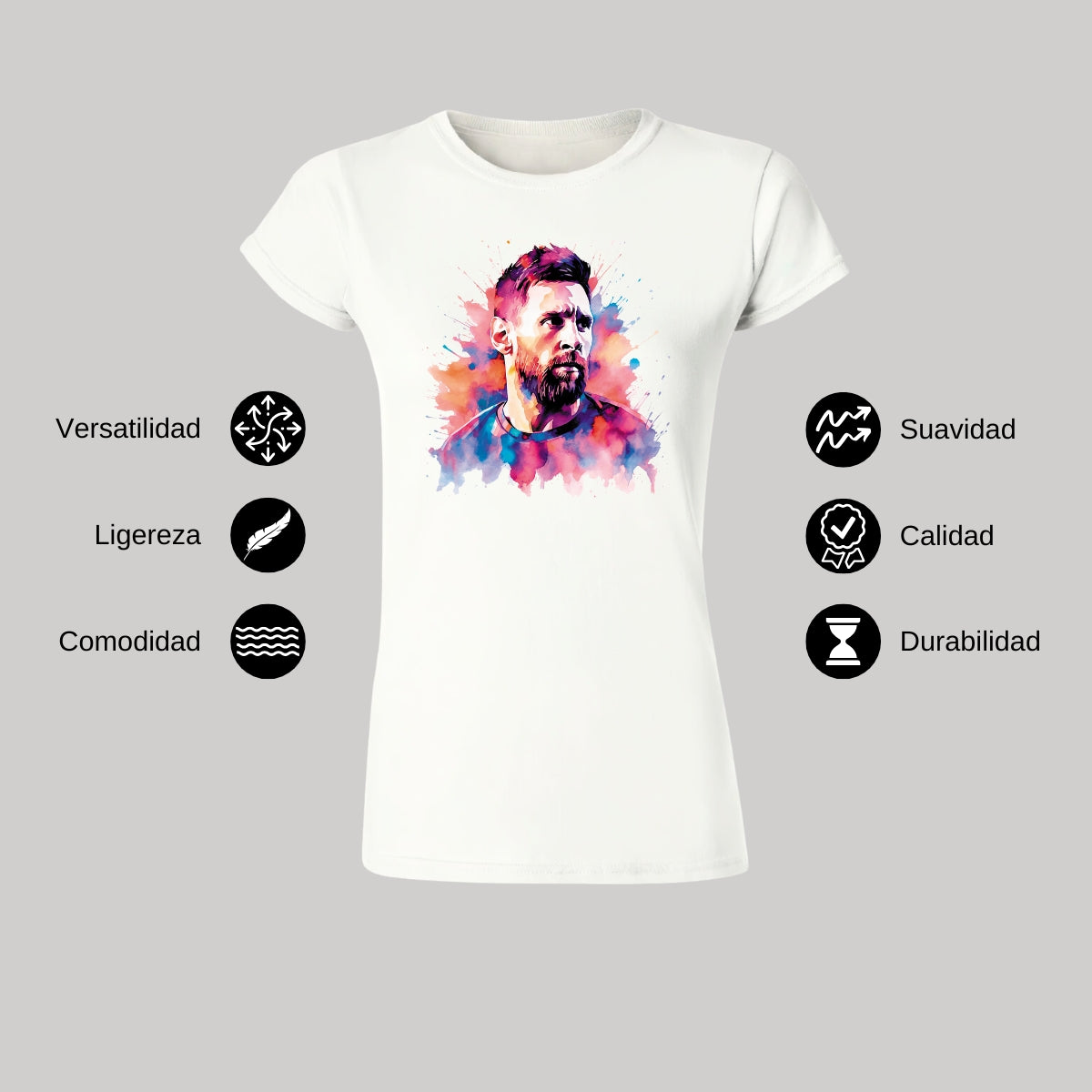- ORIGINALIDAD Y SOSTENIBILIDAD: Playera de Mujer manga corta, Producto con un diseño original de Messi impreso con tecnología DTG (directo a la prenda) tacto cero. Se utilizan tintas ecológicas sin contaminantes que se adhieren a las fibras de la ropa, garantizando calidad, colores vivos e imagen de larga duración en la camiseta sin comprometer el planeta.