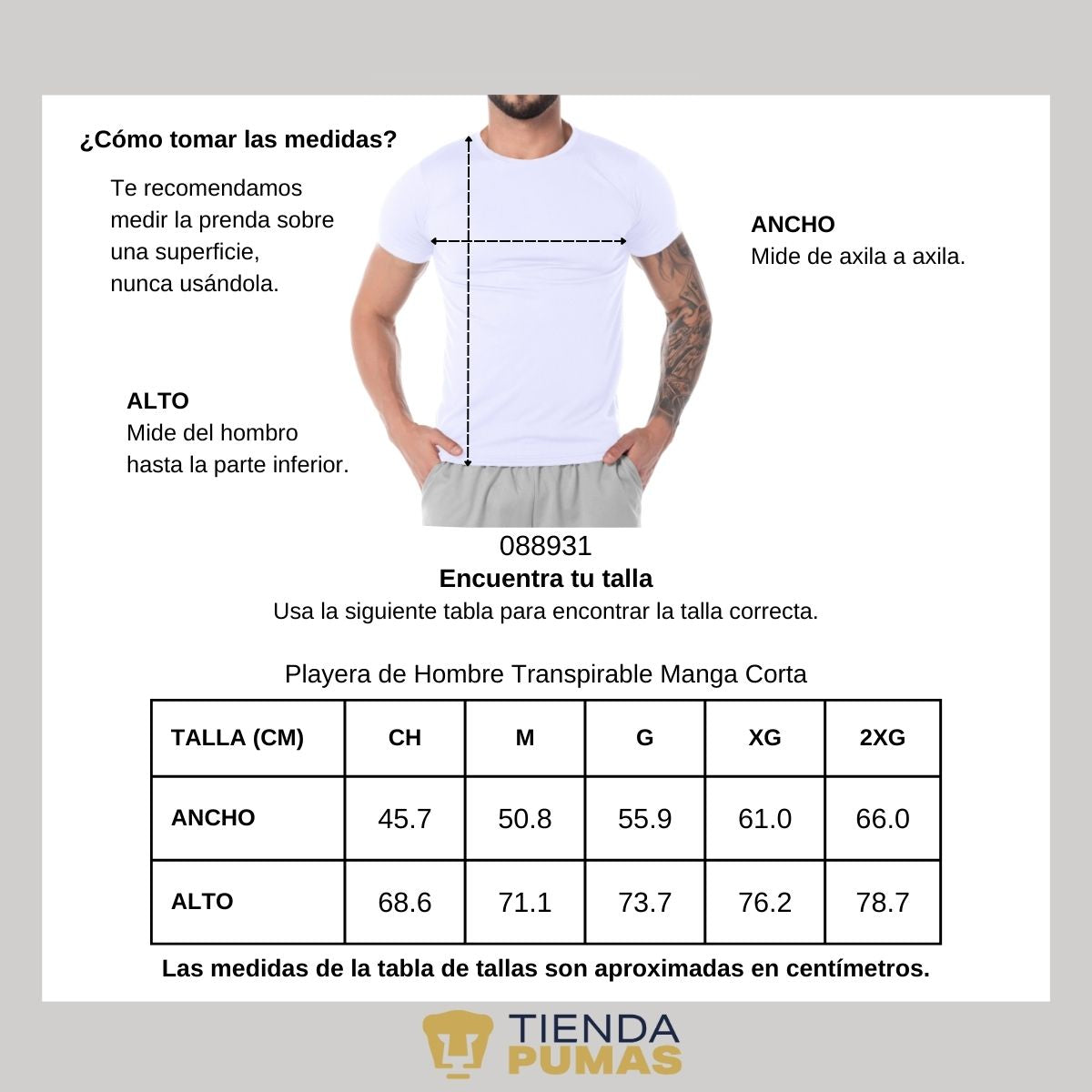 - Ancho: de axila a axila. Alto: del hombro hasta abajo