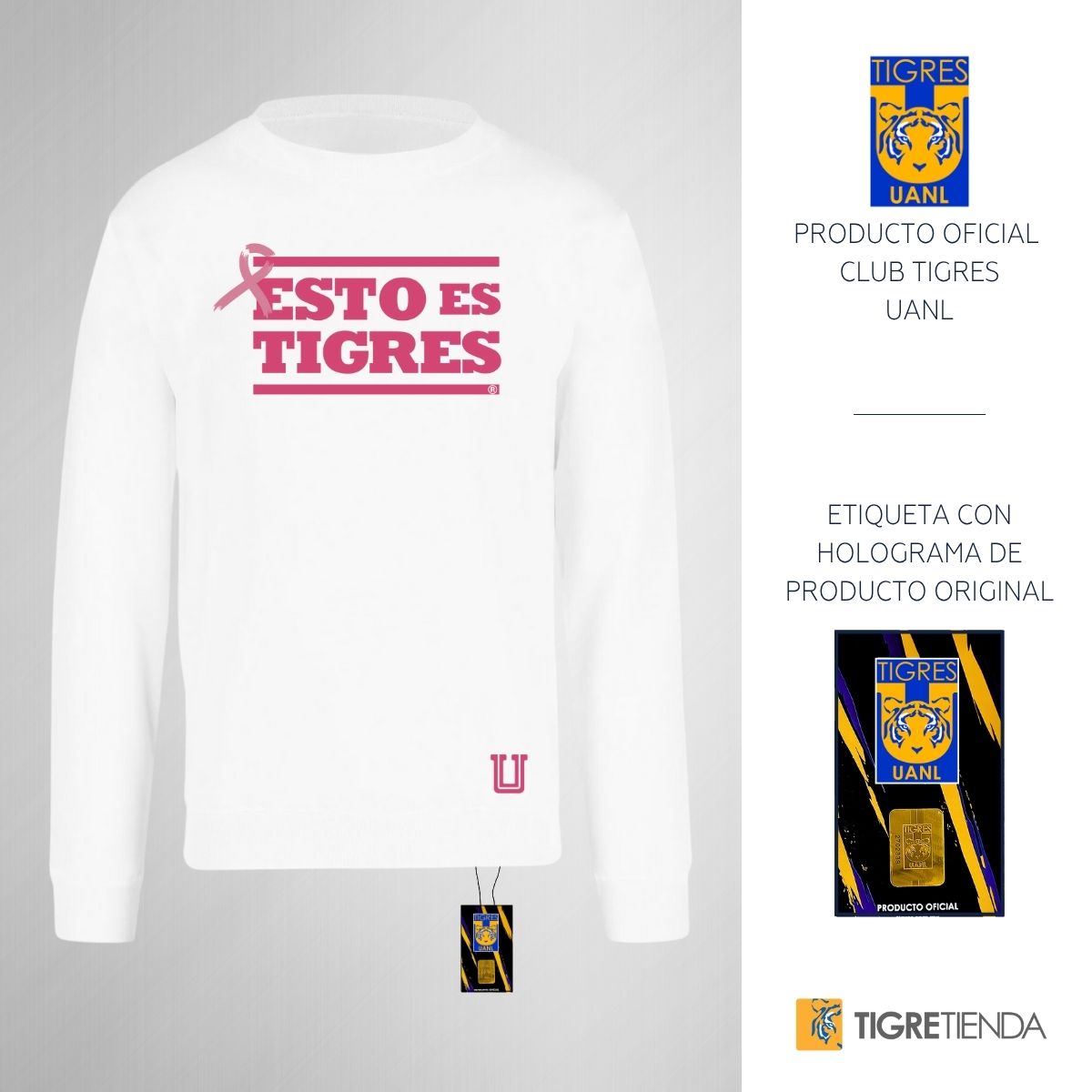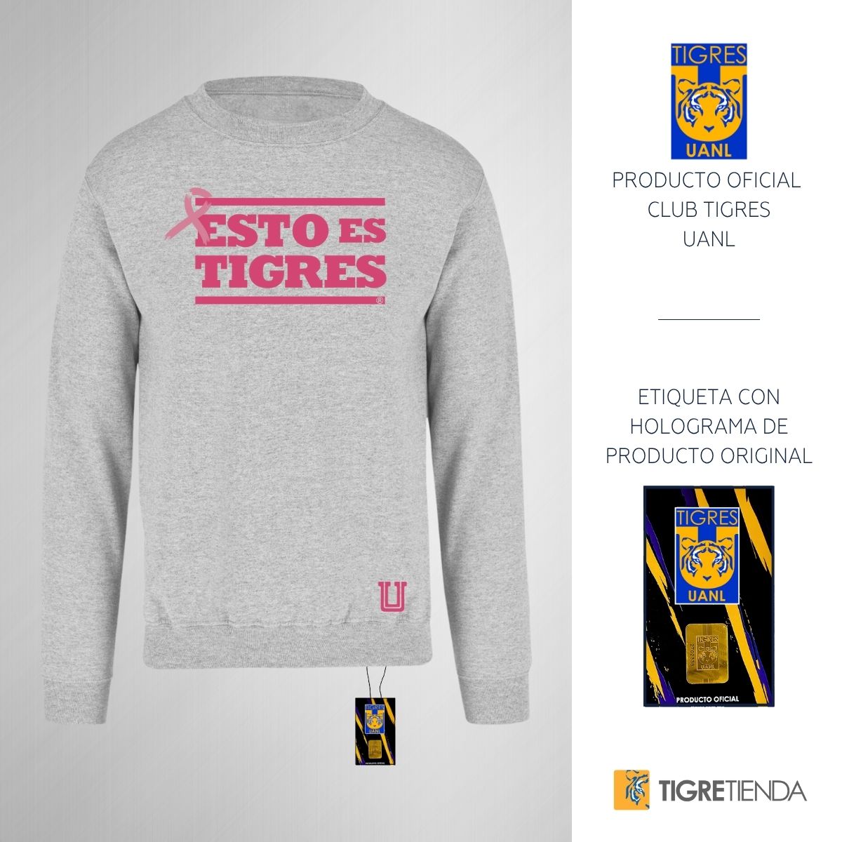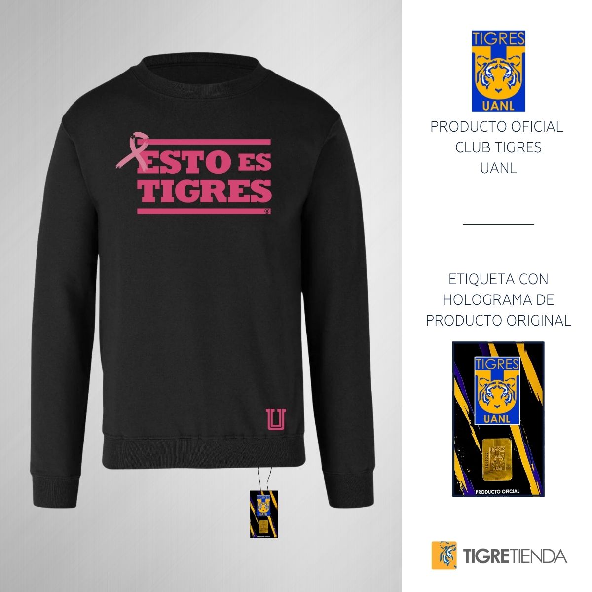 - ORIGINALIDAD Y SOSTENIBILIDAD: Sudadera de adulto cuello redondo sin gorro, Producto Oficial con un diseño original de Tigres UANL impreso con tecnología DTG (directo a la prenda) tacto cero. Se utilizan tintas ecológicas sin contaminantes que se adhieren a las fibras de la ropa, garantizando calidad, colores vivos e imagen de larga duración en la sudadera sin comprometer el planeta. La sudadera cuenta con etiqueta y holograma que garantiza un producto 100% original de Tigres.
