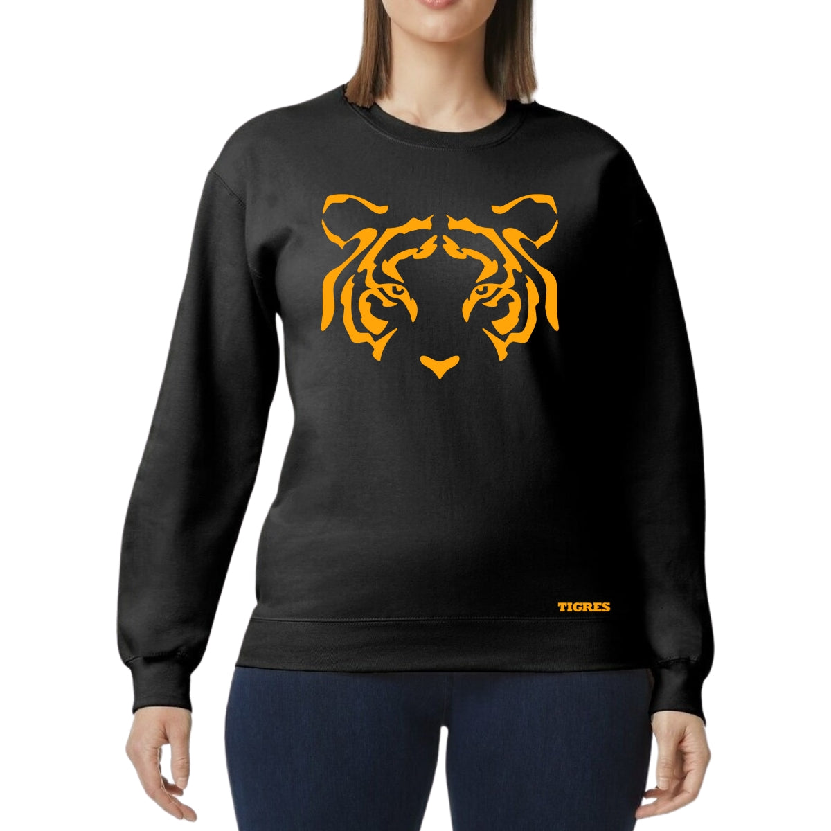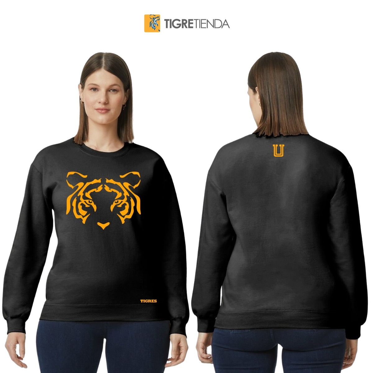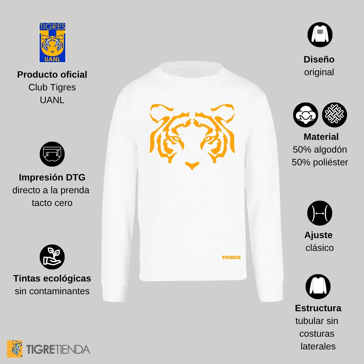- ORIGINALIDAD Y SOSTENIBILIDAD: Sudadera de adulto cuello redondo sin gorro, Producto Oficial con un diseño original de Tigres UANL impreso con tecnología DTG (directo a la prenda) tacto cero. Se utilizan tintas ecológicas sin contaminantes que se adhieren a las fibras de la ropa, garantizando calidad, colores vivos e imagen de larga duración en la sudadera sin comprometer el planeta. La sudadera cuenta con etiqueta y holograma que garantiza un producto 100% original de Tigres.